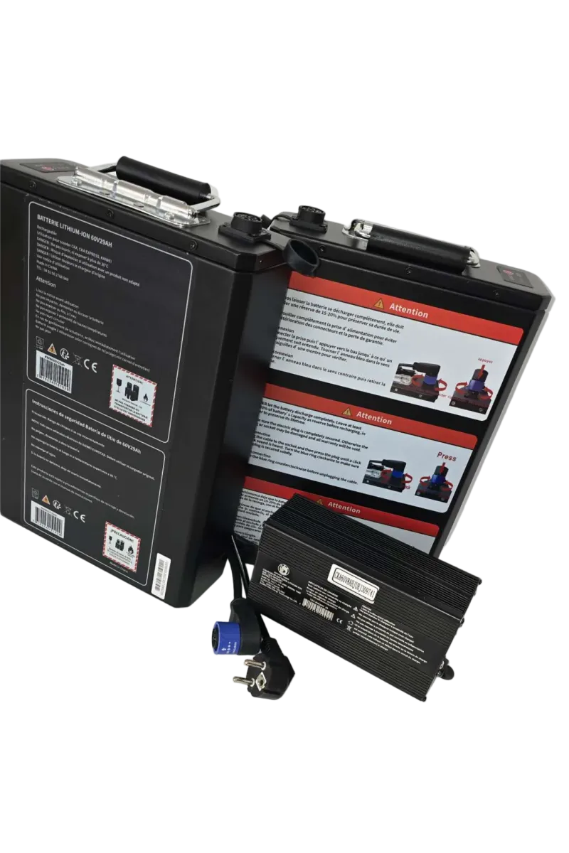 Un second emplacement pour batterie permet de doubler l’autonomie avec une batterie supplémentaire (une batterie fournie par défaut). Temps de recharge complet : 2h30 à 3h30.