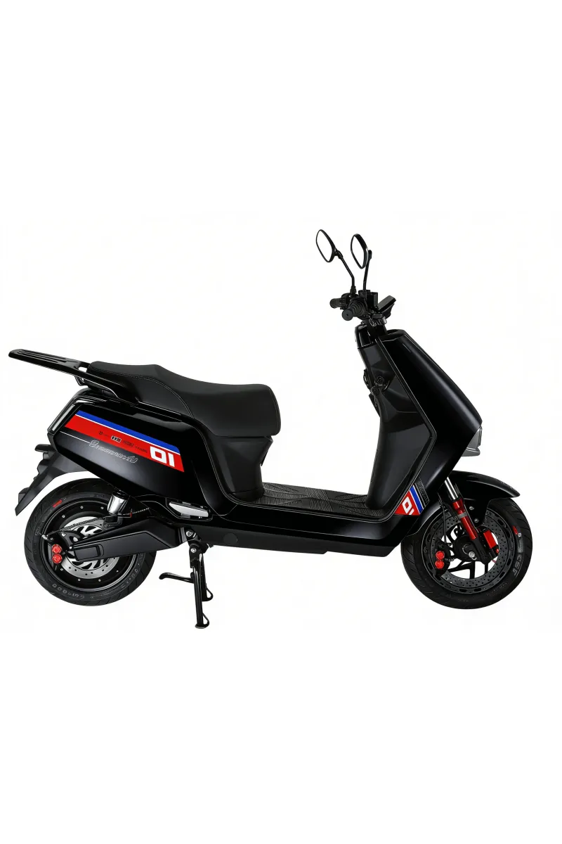 Le Scooter A9 est équipé d’un moteur électrique brushless et d’une transmission automatique, assurant une conduite fluide et silencieuse. Sa batterie Lithium amovible (60V26Ah ou 60V29Ah) offre une autonomie de 40 à 60 km et se recharge en 2h30 à 3h30.